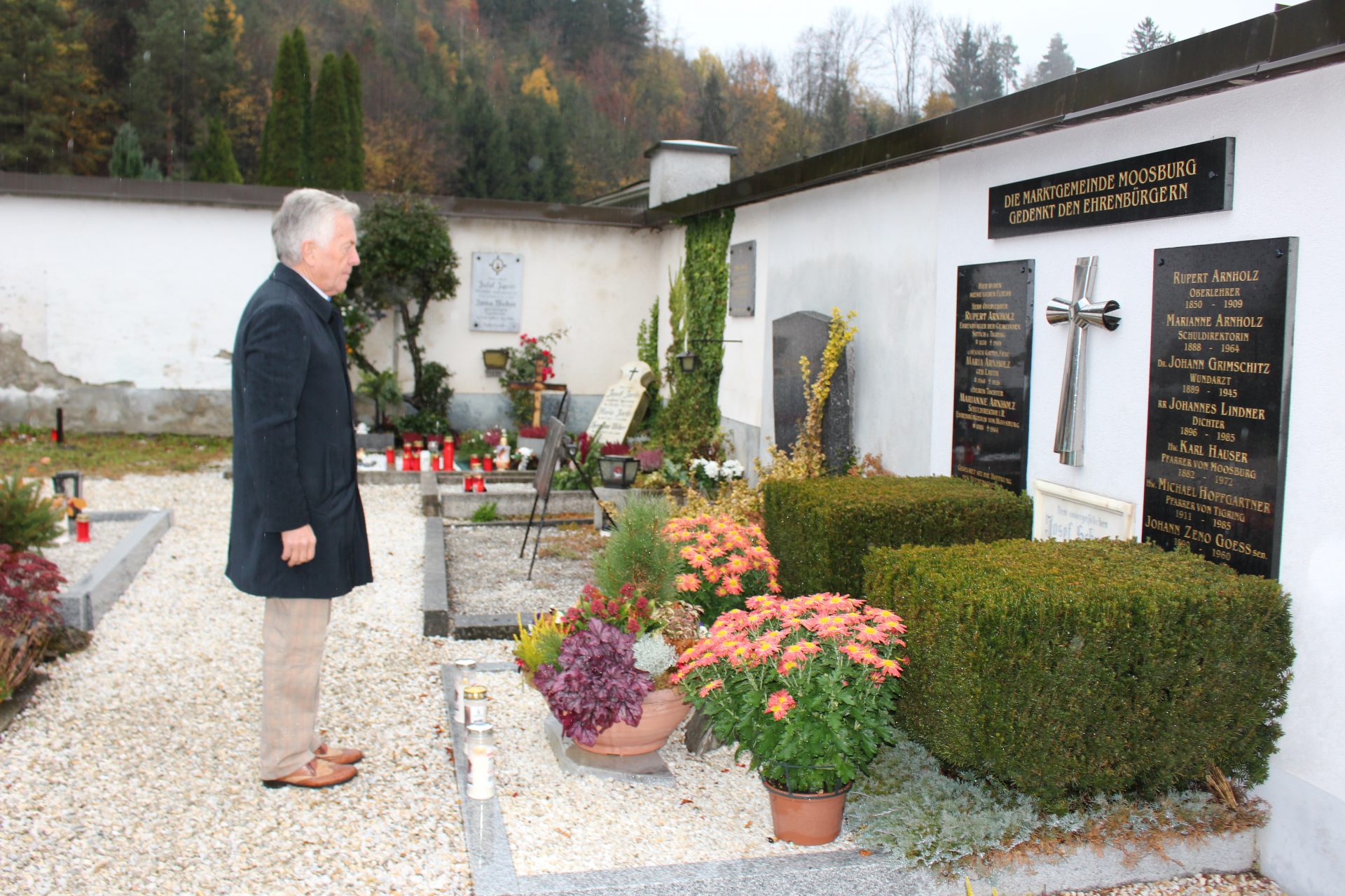 Anlässlich des Allerheiligen- und Allerseelentages gedachte Bürgermeister Herbert Gaggl den verstorbenen Moosburgerinnen und Moosburgern und zündete am Ehrengrab eine Kerze an.