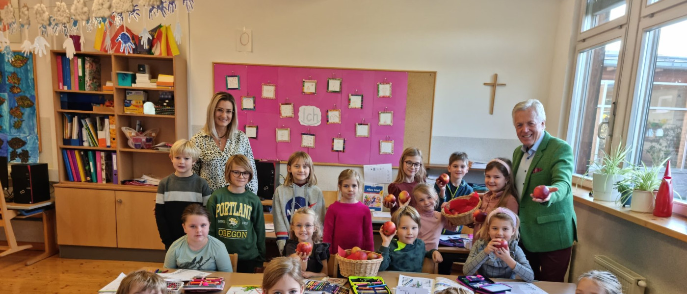 „Die Gesunde Ernährung für unsere Kinder ist mir besonders wichtig“, sagte LAbg. Bürgermeister Herbert Gaggl und schaute auch gleich bei der Verteilung in den Schulen und im Kindergarten persönlich vorbei.
