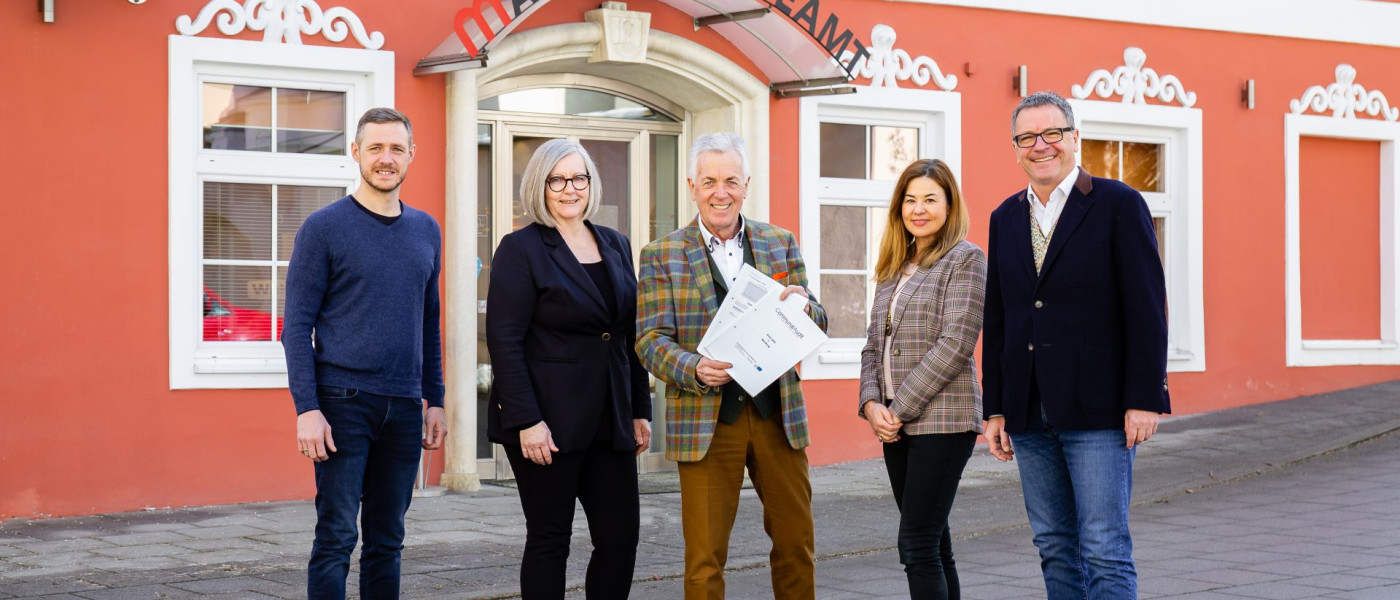 Bauamtsleiter Gabriel Pirker, Moosburg-Service-Leiterin Sylvana Wobak, Labg Bgm Herbert Gaggl, Finanzverwalterin Barbara Lichtenegger und Amtsleiter Norbert Pichler (vl.) sind stolz auf das Ergebnis des Communal-Audits.