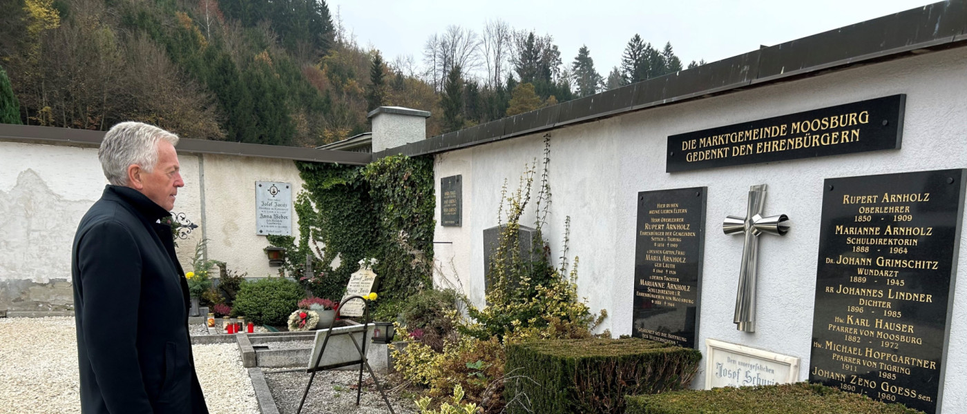 Anlässlich des Allerheiligen-Tages gedachte Bürgermeister Herbert Gaggl am Ehrengrab der Marktgemeinde den verstorbenen Moosburgerinnen und Moosburgern.