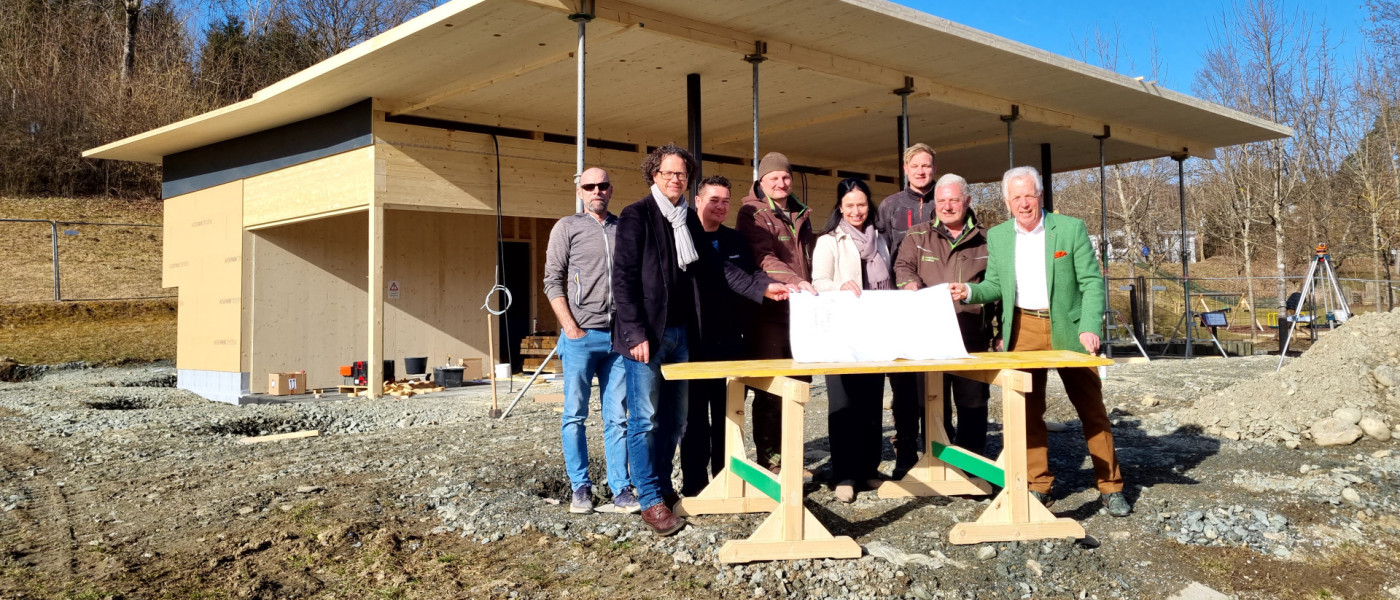 Auf der Baustelle läuft alles nach Plan, die betrauten Firmen machen perfekte Arbeit. Bgm LAbg Herbert Gaggl, Vbgm Astrid Brunner und Vbgm Roland Gruber machten sich bei der Baubesprechung ein Bild vom Baufortschritt und freuen sich schon auf die Fertigstellung. Die Eröffnung ist für den kommenden Juni geplant.