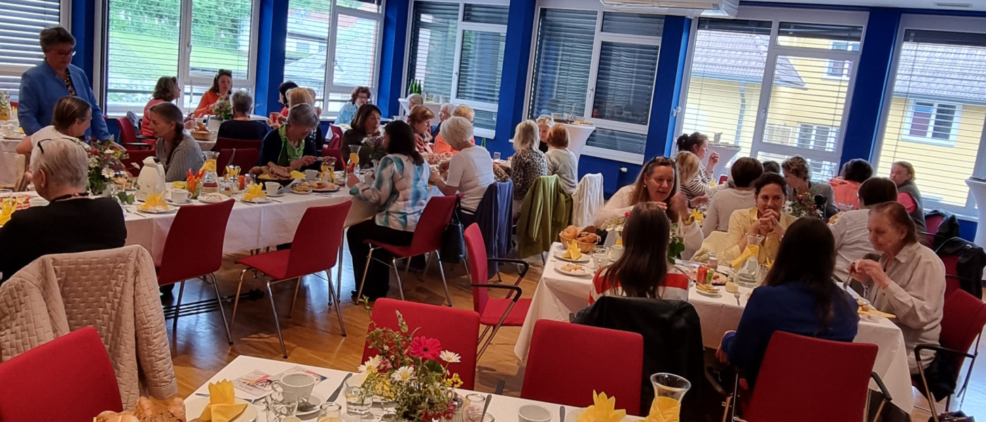 Am 17. Mai fand im Karolinger Saal unser erstes Frauenfrühstück statt und wurde auf Anhieb zu einem inspirierenden und herzlichen Treffpunkt für Frauen jeden Alters. Über 60 Teilnehmerinnen, drei Teilnehmer und ein Assistenzhund trafen sich, um bei einem köstlichen Frühstück in entspannter Atmosphäre neue Kontakte zu knüpfen, sich über Frauengesundheit auszutauschen und neue Impulse für den Alltag mitzunehmen.