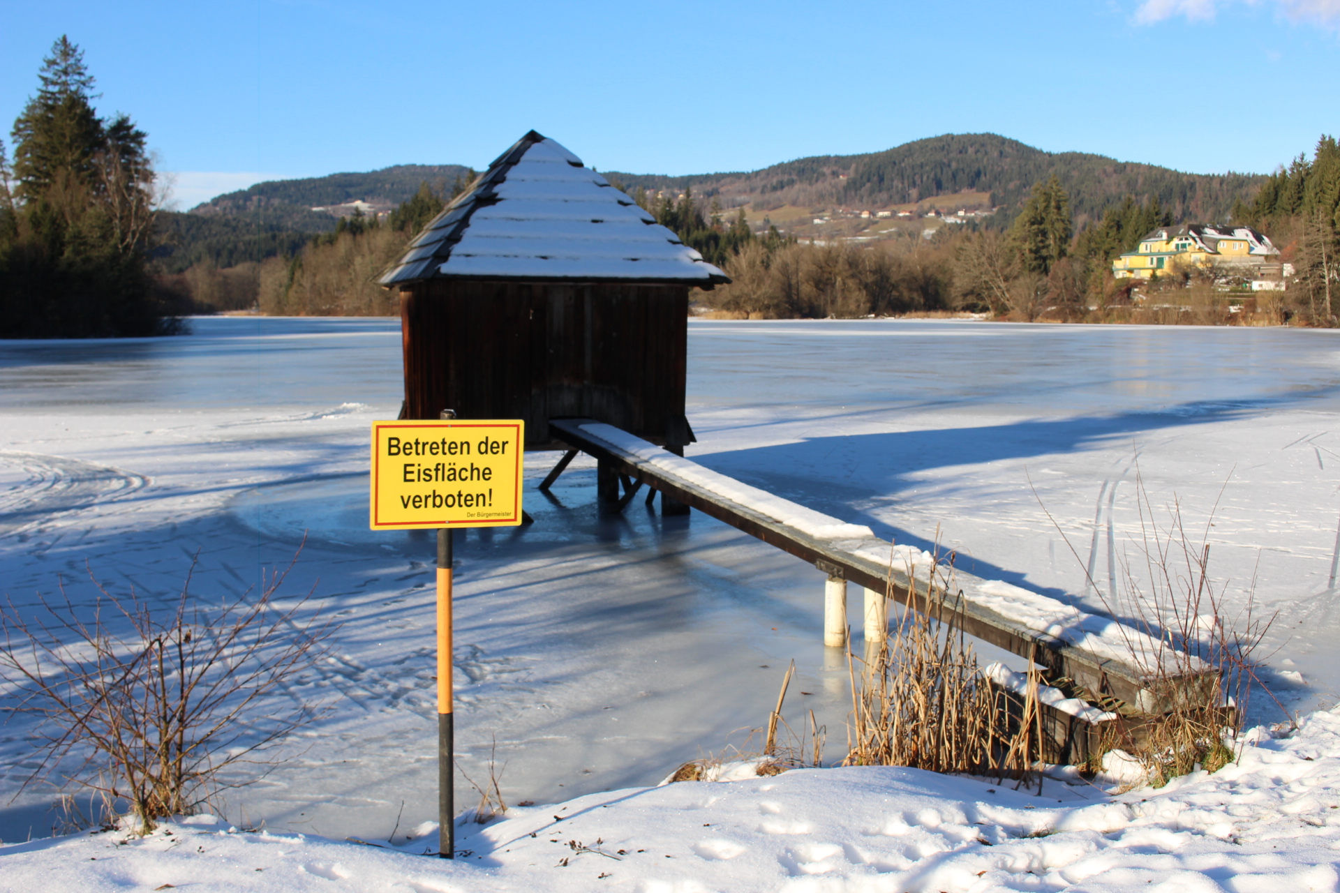 „Bitte betreten Sie die Eisflächen nicht und seien Sie Vorbild für Kinder und Jugendliche. Sobald das Eis die entsprechende Stärke hat, wird der Teich für das Eislaufen freigegeben“, appelliert Bürgermeister Herbert Gaggl.