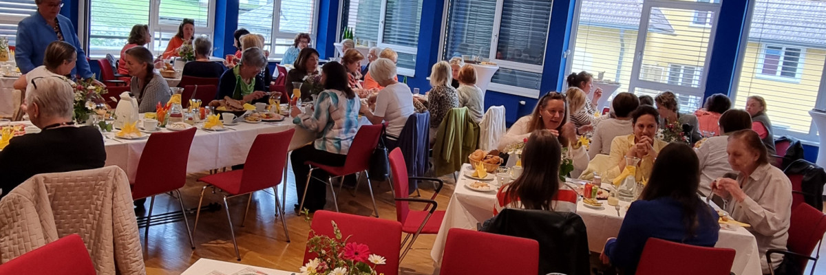 Am 17. Mai fand im Karolinger Saal unser erstes Frauenfrühstück statt und wurde auf Anhieb zu einem inspirierenden und herzlichen Treffpunkt für Frauen jeden Alters. Über 60 Teilnehmerinnen, drei Teilnehmer und ein Assistenzhund trafen sich, um bei einem köstlichen Frühstück in entspannter Atmosphäre neue Kontakte zu knüpfen, sich über Frauengesundheit auszutauschen und neue Impulse für den Alltag mitzunehmen.