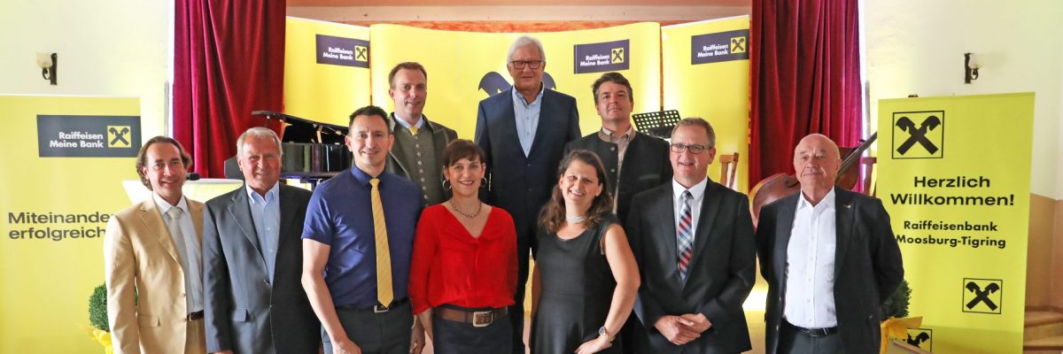 Labg. Bgm. Herbert Gaggl und der Aufsichtsratvorsitzende der Raiffeisen Landesbank Robert Lutschonig erwähnten in ihren Festansprachen die Bedeutung der örtlichen Raiffeisenbank als Nahversorger und wichtiger Bestandteil des wirtschaftlichen Lebens in Moosburg. Gaggl:“ Orstkernentwicklung und -erhalt ohne die Raiffeisenbank wäre unvorstellbar“.