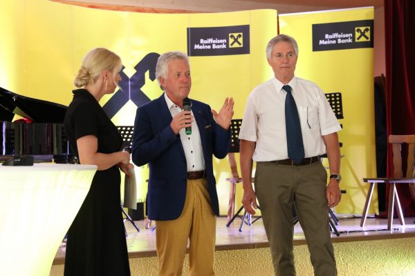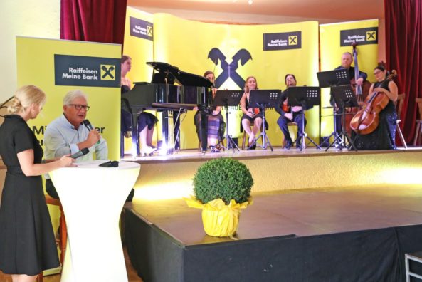 Labg. Bgm. Herbert Gaggl und der Aufsichtsratvorsitzende der Raiffeisen Landesbank Robert Lutschonig erwähnten in ihren Festansprachen die Bedeutung der örtlichen Raiffeisenbank als Nahversorger und wichtiger Bestandteil des wirtschaftlichen Lebens in Moosburg. Gaggl:“ Orstkernentwicklung und -erhalt ohne die Raiffeisenbank wäre unvorstellbar“.