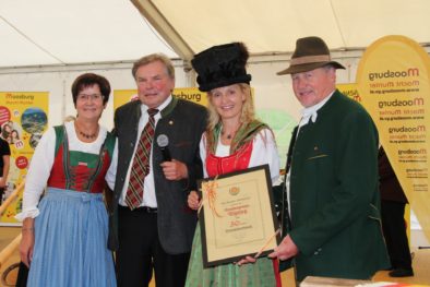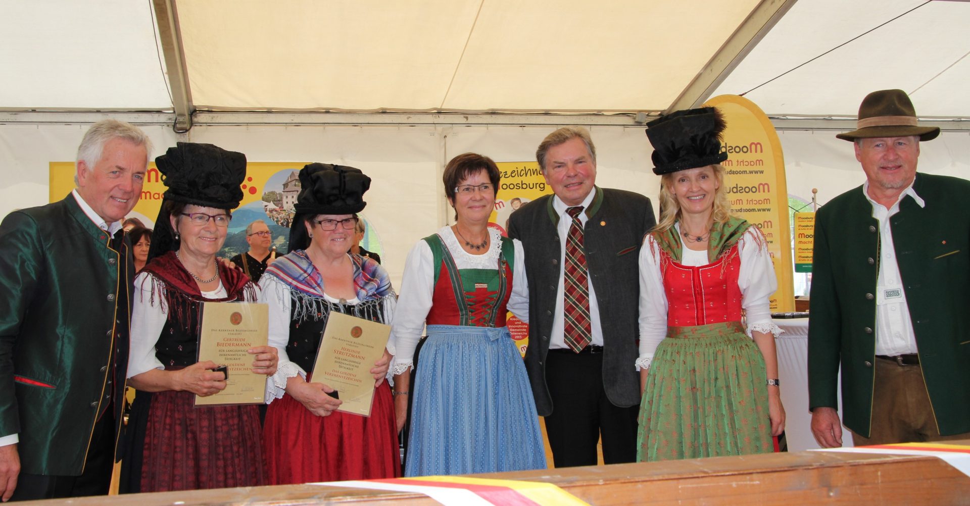 Die Vertreter der Partnerstädte aus Deutschland sowie die politischen Vertreter reihten sich in den Gratulationsreigen ein. Gemeindevorstand Gerhard Vidounig überbrachte die besten Grüße und Glückwünsche des Landeshauptmannes von Kärnten Dr. Peter Kaiser und gratulierte persönlich ganz herzlich zum runden Jubiläum. Als weitere politische Vertreter gratulierten LAbg. Mag. Silvia Häusl-Benz sowie LAbg. Mag. Gernot Darmann die sich für das Engagement der Trachtengruppe hinsichtlich Brauchtum und Kultur bedankten. Bürgermeister und LAbg. Herbert Gaggl bedankte sich bei Gerti Biedermann und vor allem bei der neuen Obfrau Ing. Isabella Jessenitschnig, MA für die bereits gesetzten und in Zukunft noch zu setzenden Aktivitäten und Initiativen der Trachtengruppe in der Marktgemeinde Moosburg und über deren Grenzen hinaus. LAbg. Bürgermeister Herbert Gaggl würdigte die Geehrten und Ausgezeichneten, gratulierte zum runden Jubiläum und bedankte sich für die Energie, die von der Trachtengruppe Tigring zum Wohle der Gemeinschaft, der Gesellschaft und der Marktgemeinde Moosburg eingesetzt wird.