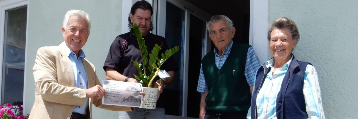 Bürgermeister Herbert Gaggl gratulierte anlässlich des Jubiläums und übergab eine Glücksfeder. „Irene und Reinhard Feichter haben hart gearbeitet und den Karawankenblick zu einem beliebten Urlaubsdomizil und Einheimischen-Gasthof gemacht. Die Bedürfnisse der Gäste wurden nie aus den Augen gelassen. Hier fühlen sich in einer familieren Atmosphäre alle wohl. Ich gratuliere sehr herzlich und bedanke mich für diese großartige Leistung“, so der Bürgermeister.