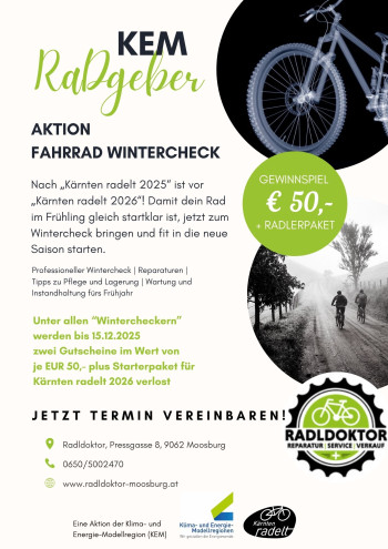 Damit das Radl im Frühling gleich startklar ist – jetzt zum Wintercheck bringen und fit in die neue Saison starten: Professioneller Wintercheck, Reparaturen, Tipps zu Pflege und Wartung – und ein Gewinnspiel!
