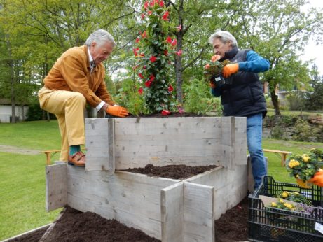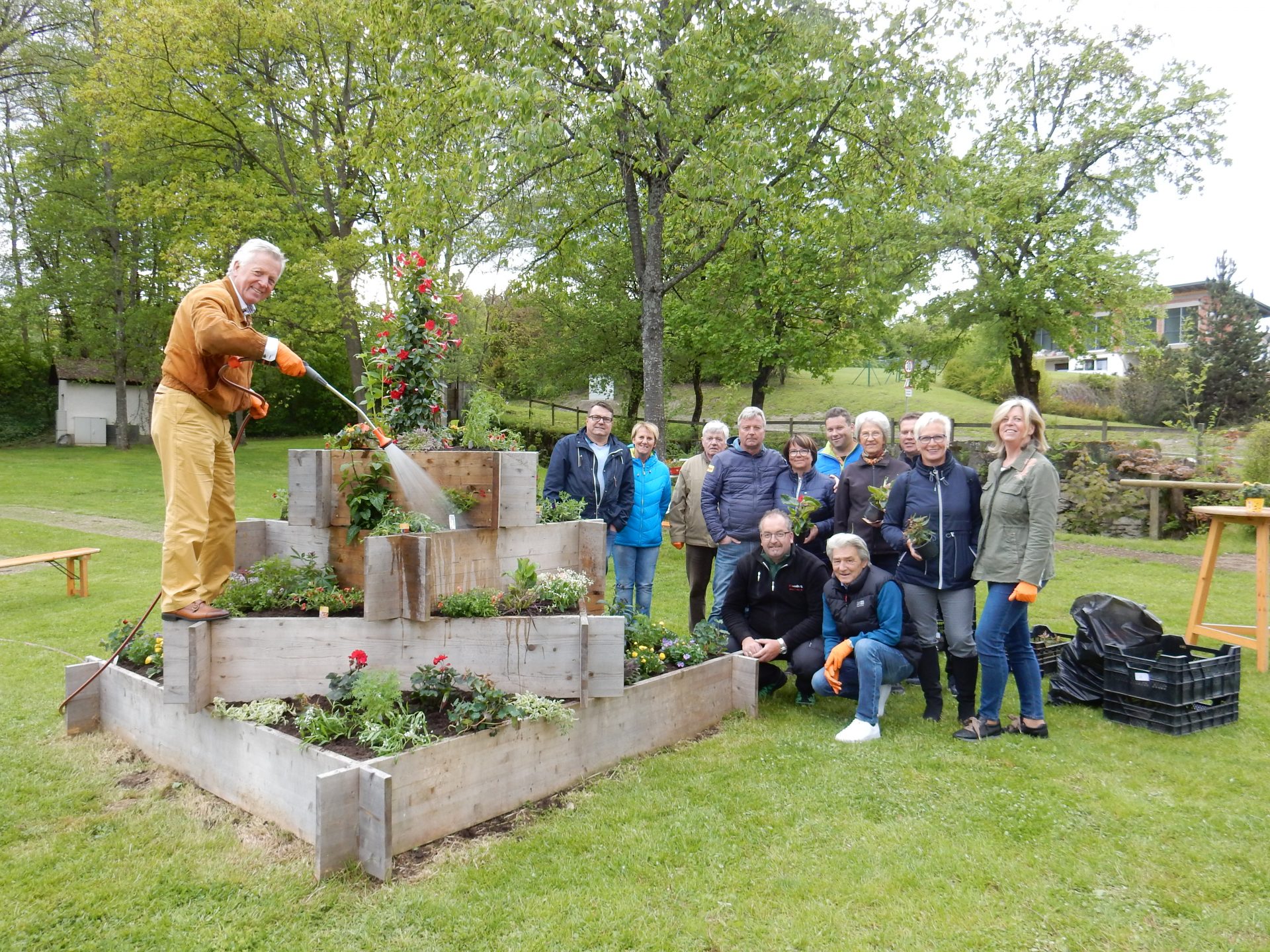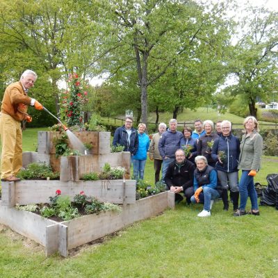 Auch in diesem Jahr wird die Marktgemeinde Moosburg wieder an der landesweiten Blumenolympiade teilnehmen. Zum Auftakt und als Startschuss in die Blumensaison wurde auf der Schlosswiese hinter dem Karolinger Spielplatz von Gärtnermeister Bernhard Wastl wieder die hölzerne Blumenpyramide bepflanzt, mit der tatkräftigen Unterstützung zahlreicher Blumenfreunde. Die Bepflanzung stand dieses Jahr unter dem Motto „Bienenfreundlichkeit“ und „Kräutergarten“. Dazu gab es wieder wertvolle Tipps, Anregungen und Ratschlägen rund ums Anpflanzen, die richtige Erde, Dünger etc. Spazieren Sie vorbei und bewundern Sie das farbenfroh blühende „Gesamtkunstwerk“. Frau Vzbgm. Hermine Kogler freute sich gemeinsam mit BGM LAbg. Herbert Gaggl über die interessierten Besucher, die sich auch von den niedrigen Temperaturen nicht davon abhalten ließen, viele Ideen und Anregungen zum Anpflanzen mit nach Hause zu nehmen.