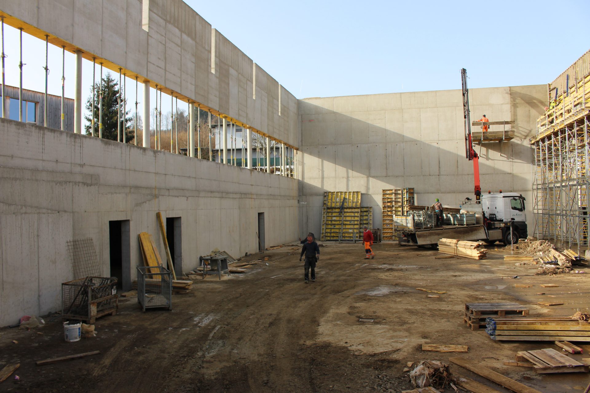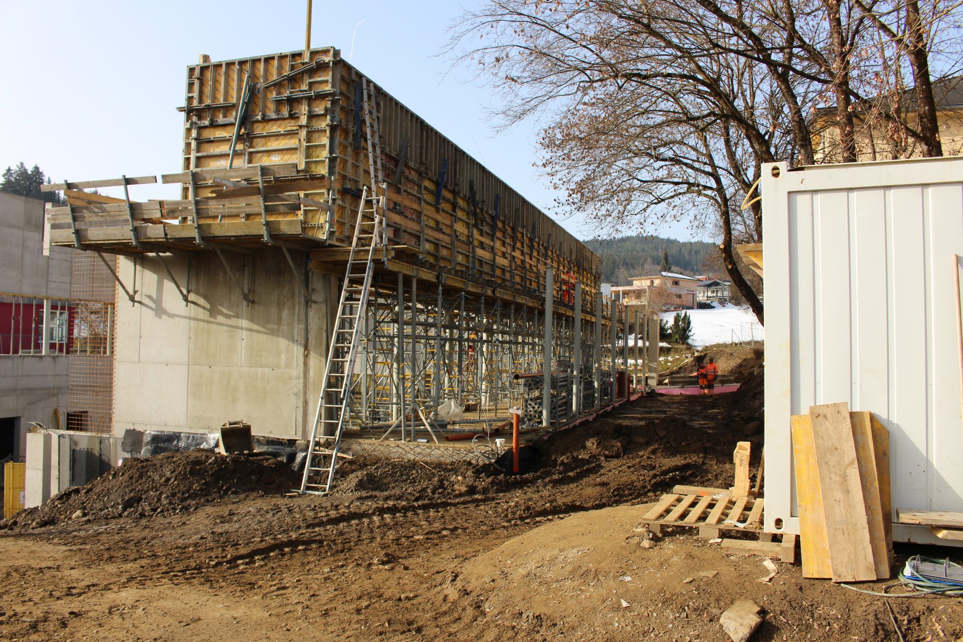 Nach jahrelangen Verhandlungen wird in Moosburg an einem „Jahrhundertprojekt“ gebaut. In unmittelbarer Nähe der Neuen Mittelschule, der Volksschule und des Kindergartens wird gebaut: eine multifunktionale Sporthalle für den Turnunterricht und für die breite Öffentlichkeit sowie eine Mensa, die auch gleichzeitig ein Veranstaltungszentrum ist.
