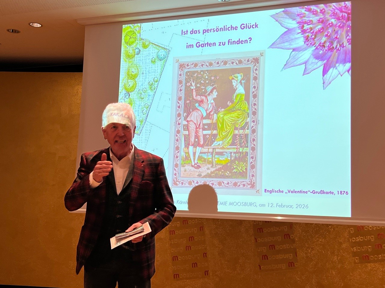 Ist das persönliche Glück im Garten zu finden? Viele interessierte Besucherinnen und Besucher wollten es am 12. Februar 2026 genau wissen und folgten der Einladung des Vereins zumglueck.jetzt mit seiner Glüxakademie in den Karolingersaal. Die international tätige Klagenfurter Gartenarchitektin Dagmar Wallgram lieferte darauf eine ebenso fachkundige wie inspirierende Antwort.