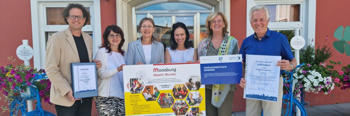 Seit 2016 bemüht sich unsere Gemeinde um Kompetenzen und Wissensvermittlung rund um das Thema Demenz. Viel ist in diesen Jahren passiert: Gründung des Demenzvereins, Etablierung des Demenzcafes und die Schulung der pflegenden Angehörigen, der Demenzmarsch wurde eingeführt, die Mitarbeiter*innen und Moosburgs Betriebe geschult… um nur einige Aktivitäten zu nennen. Im Frühjahr 2024 haben alle Mitarbeiter*innen, der Bürgermeister und der Amtsleiter einen Kurzlehrgang (online) zum Umgang mit Demenz absolviert. Aufgrund der vielen Aktivitäten und der höherqualifizierten Schulung wurden wir als Demenzaktivgemeinde ausgezeichnet. „In Moosburg hat sich in den letzten Jahren die Einstellung zur Demenzerkrankung sehr gewandelt. Die Betroffenen und deren Angehörige sind in das Gemeinschaftsleben integriert, es ist ein harmonisches Miteinander, das freut mich sehr“, so unser Bürgermeister, LAbg Herbert Gaggl.