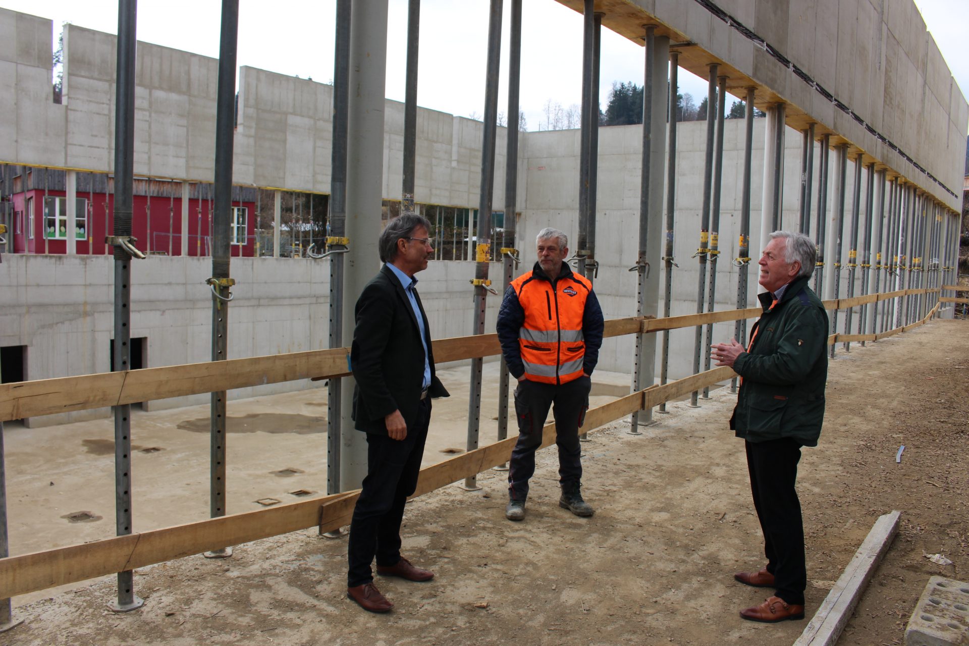 Foto: Ing. Norbert Guggenberger (Swietelsky, der verantwortliche Baupolier und Bgm. Herbert Gaggl (vl) anlässlich einer Baubesichtigung.