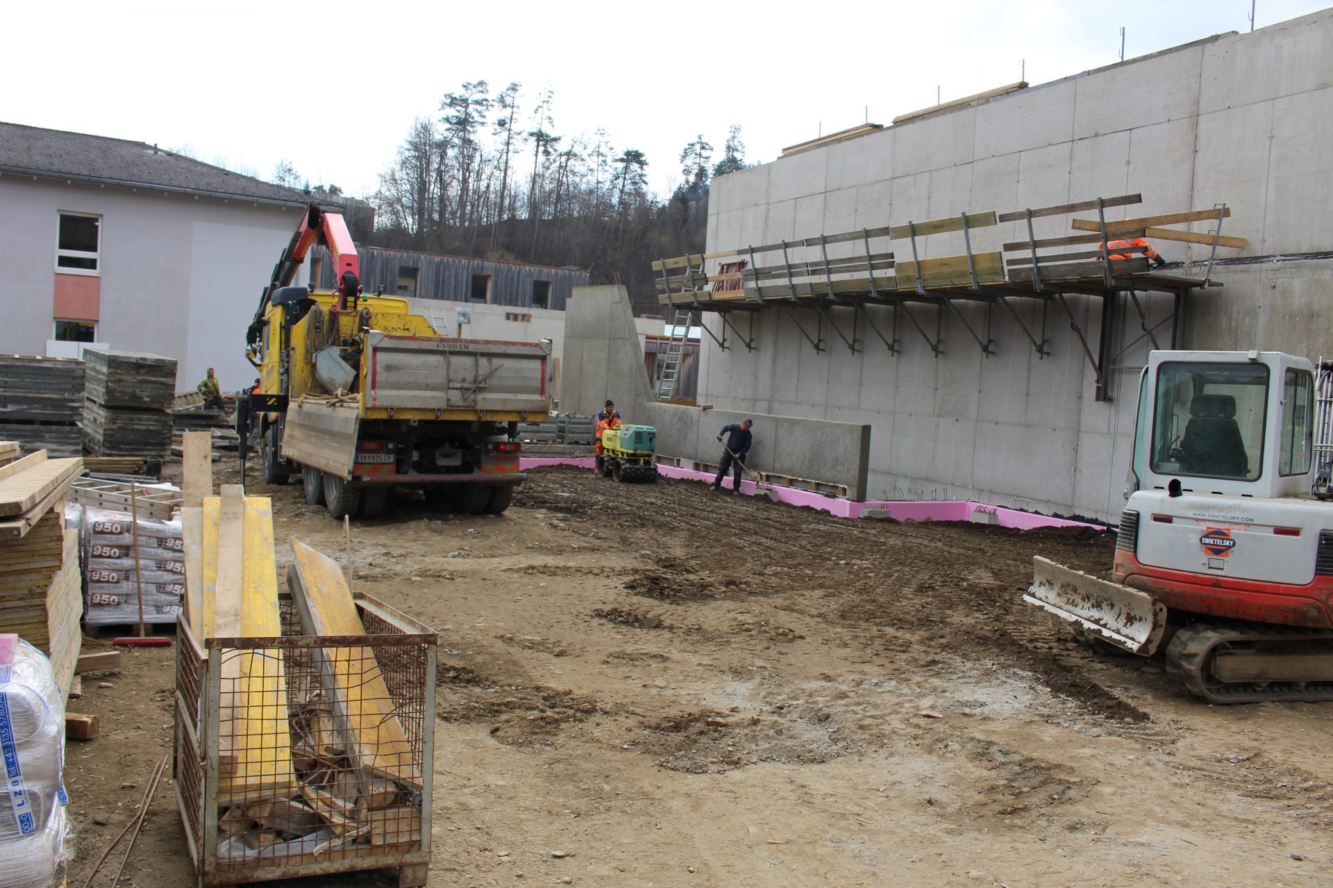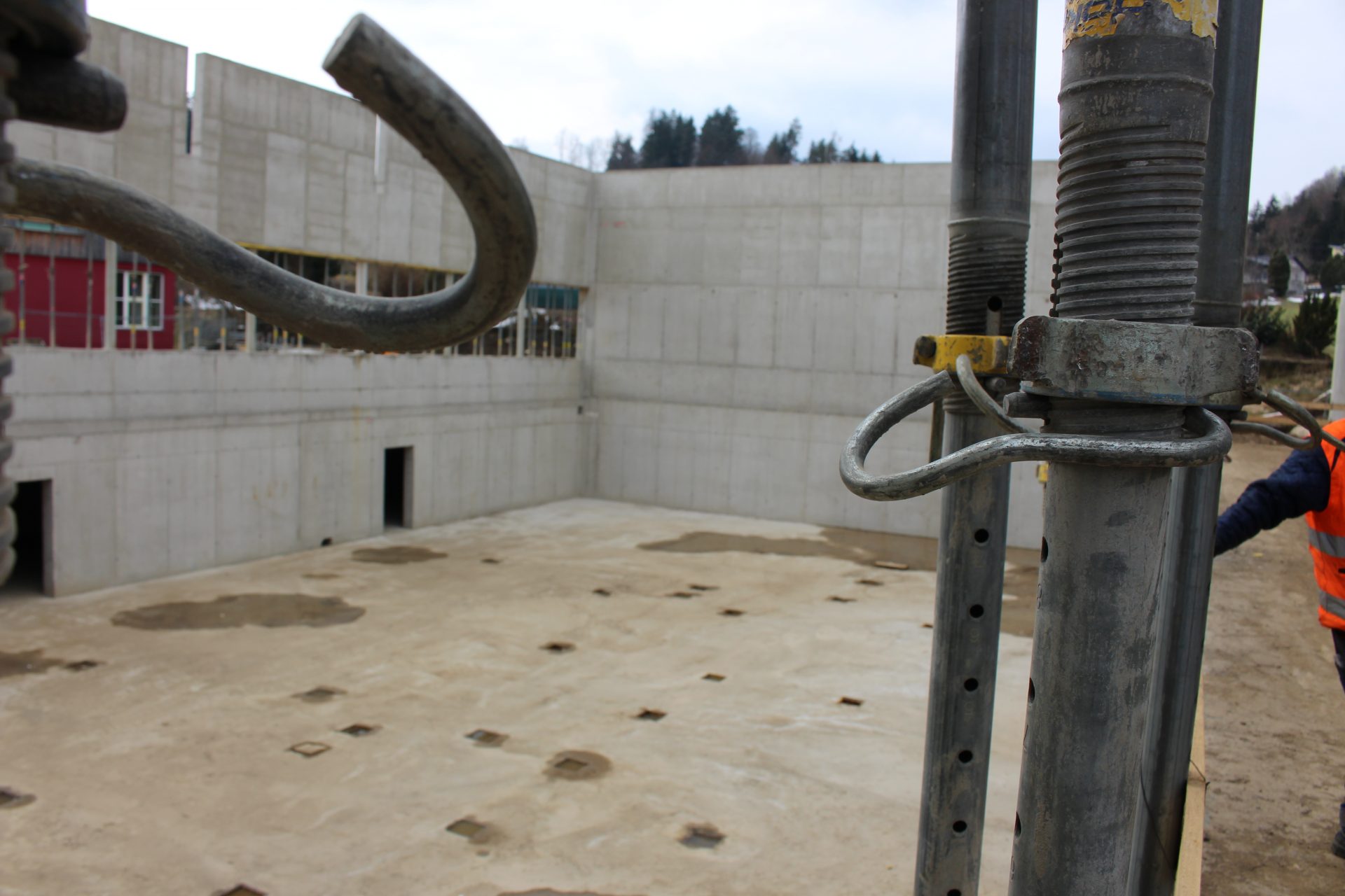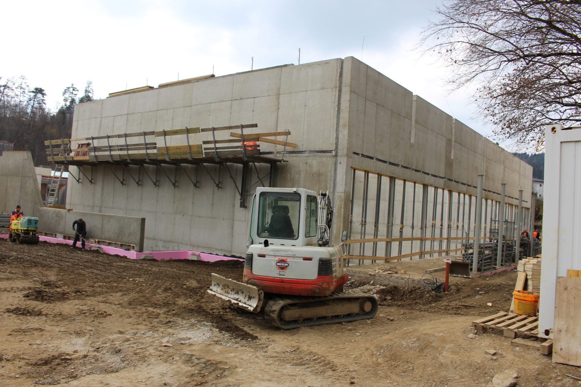 Die Bauarbeiten gehen zügig voran. „Ich freue mich sehr, dass die bauausführende Firma Switelsky mit vollem Einsatz baut. Die Halle wächst. Das ist ein Jahrhundertprojekt“, sagt Bürgermeister Herbert Gaggl.