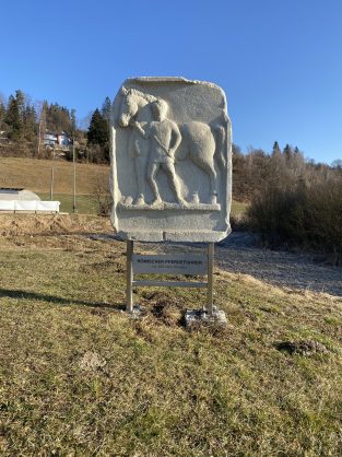 Entlang der alten Römerstraße in Moosburg wurden auf Initiative von Max Goritschnig in Zusammenarbeit mit dem Karolingerverein, Präsident Dr. Hermann Leber und der Marktgemeinde Moosburg Steine, Reliefs und Skulpturen, aufgestellt.