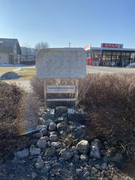 Dieses Projekt soll interessierten Menschen Geschichte und Kultur außerhalb von Museen zugänglich machen. Die Steine zeigen Darstellungen aus der Römerzeit, wie beispielsweise einen römischen Holzarbeiter oder den Kampf von Gladiatoren mit einem Bär.