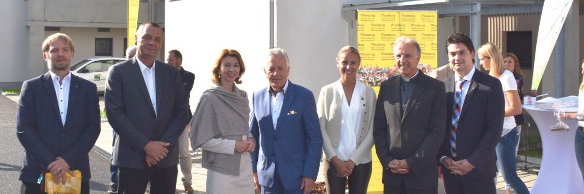 Zusammen mit Ingenieur Harald Stranner, Geschäftsführer des Kärntner Siedlungswerkes und LHstv. Dr. Gaby Schaunig übergab LAbg. Bürgermeister Herbert Gaggl den Mietern die Schlüssel für ihr neues zu Hause in Moosburg.