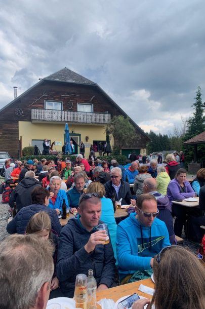 Bestes Wanderwetter begleitete die TeilnehmerInnen der 9. Sternwanderung auf den Pirkerkogel aus den drei Gemeinden Krumpendorf, Moosburg und Pörtschach am 9. Oktober. Die erste Etappe führte die Moosburger Gruppe über den Glücksparcours und den Weg der Stille zur Buschenschank Brock in Pörtschach, wo die anderen beiden Gruppen auch eintrafen. Erstmals in der neunjährigen Geschichte der Sternwanderung trafen dabei über 100 Wandersleute aufeinander. Nach der Labung beim Brockhof erzählte der Pörtschacher Historiker Peter Napetschnig so manches zur Geschichte des Hofes und dessen Umgebung. Die weitere Wanderung führte die große Gruppe dann zur nächsten Station auf den Pirkerkogel. Für die Mühen des Aufstieg wurde man doppelt belohnt – mit einem Bilderbuchausblick und mit einer Begegnung der besonderen Art: Gitarrenprofi Bulat Budaev verzauberte die Wandersleute mit einer musikalische Reise rund um den Globus. Bei der Endstation, dem Reiterhof Binz, gab es zum Abschluss noch flotte Hausmusik und eine köstliche Stärkung von Karin Binz und dem Verein Pritschitz Aktiv. Die Bürgermeisterin und die beiden Bürgermeister der drei Teilnehmergemeinden bedankten sich bei den TeilnehmerInnen und luden bereits ein zur 10. Jubiläumswanderung im Jahr 2022. Ein großes Danke an Christian Berg vom Verein Pritschitz Aktiv für die Organisation dieser tollen Veranstaltung.