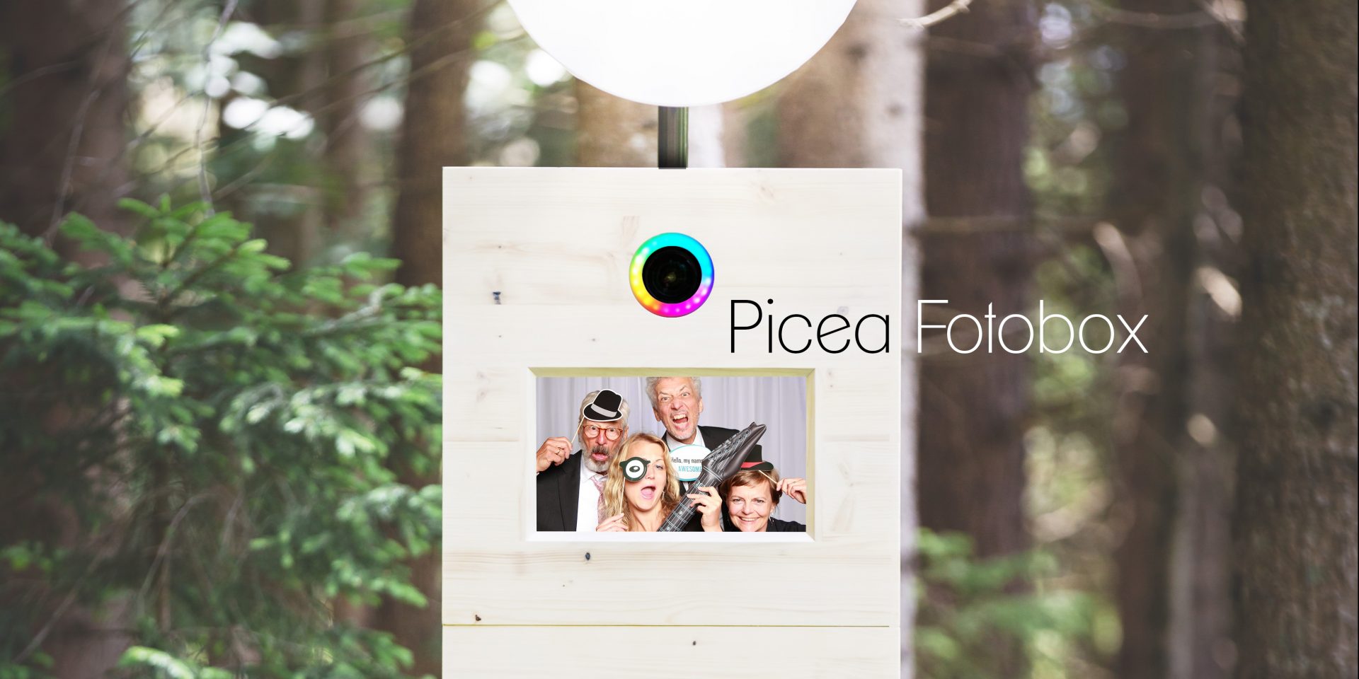 „Wir haben unsere Fotobox komplett neu gemacht und ihr einen Namen gegeben. Picea-Fotobox. Übersetzt: Fichte. Da uns Regionalität wichtig ist, haben wir sie bei der Moosburger Tischlerei Fischer komplett aus Holz bauen lassen. Natürlich und Robust. Ein Hingucker mit dem Motivations-Leuchtring und mit dem Auf-/Abbauservice, dem Sofordruck in bester Qualität und den personalisierten Collagen ist sie ein echtes Highlight auf jeder Party. Von Geburtstagsfeiern, Hochzeiten, Firmenfeiern.