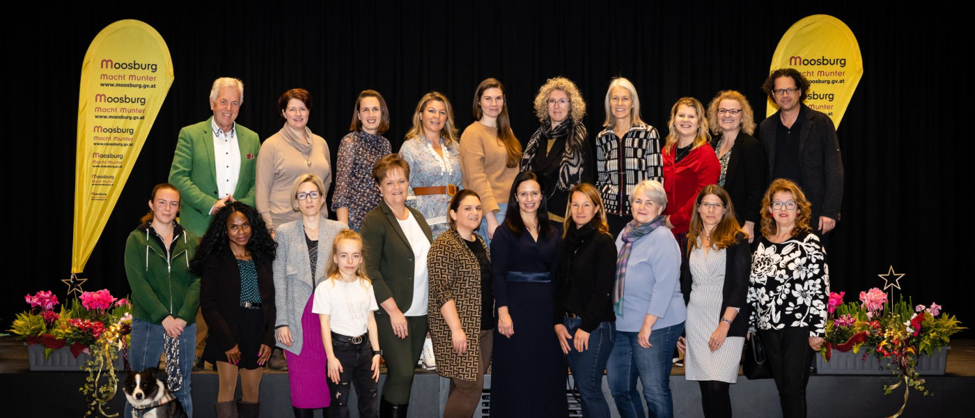 Ein herzliches Dankeschön gilt den vier Unternehmerinnen der Gemeinde Moosburg, die diese Netzwerk-Veranstaltung aktiv mitgestaltet haben: Cornelia Klimbacher vom Pinterhof sorgte mit ihren Broten und Reindlingen fürs leibliche Wohl, die Modeschöpferin Genese Akomi präsentierte eine Vielzahl ihrer tollen Designs, die Floristin Kerstin Hafner von der Gärtnerei Hafner stellte ihren wunderschönen Blumenschmuck für die Bühne zur Verfügung und die Fotografin Sandra Matanovic hielt die gelungene Veranstaltung mit ihrer professionellen Linse fest.