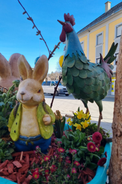 Der Frühling hält wieder Einzug! Trotz der angespannten finanziellen Lage hat die Gemeinde nicht auf ein wenig festliche Osterdekoration verzichtet. So begrüßt vor dem Gemeindeamt ein kleines, aber liebevoll gestaltetes Oster-Arrangement die Besucher. Mit fröhlichen Osterhasen und bunten Akzenten sorgt es für einen freundlichen Frühlingsgruß und ein Lächeln auf den Gesichtern der Passanten. „Vielen Dank allen, die wieder mitgeholfen haben, dass sich unsere Gemeinde so schön präsentiert,“ so Bgm Herbert Gaggl. Die sonst so liebevoll gestaltete aufwändige Dekoration im Zentrum und an den Ortseinfahrten konnte aufgrund der fehlenden Mittel heuer nicht realisiert werden.