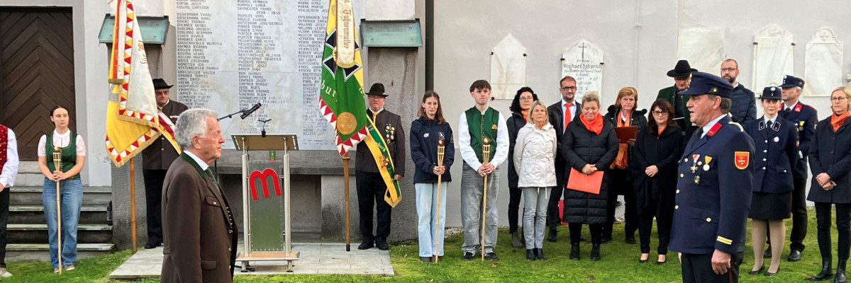 Anlässlich des 10. Oktober gedachten Bürgermeister Herbert Gaggl, Vizebürgermeisterin Astrid Brunner und Vizebürgermeister Roldand Gruber der gefallenen Moosburger, der Opfer der beiden Weltkriege und des Kärntner Abwehrkampfes und legten einen Kranz beim Denkmal in Moosburg nieder.