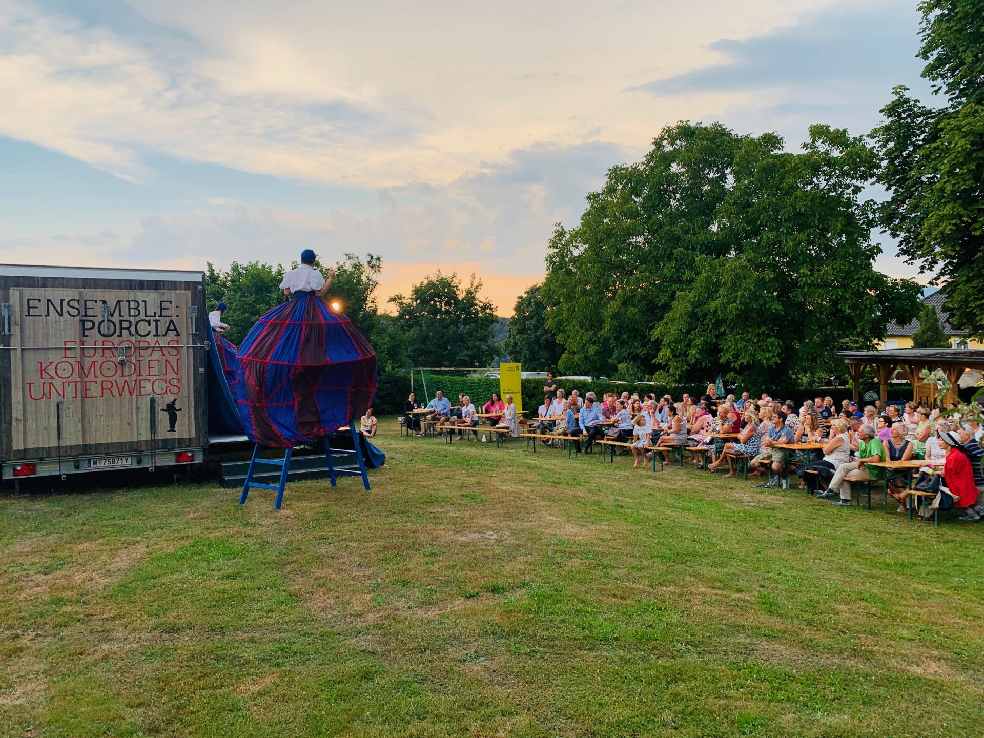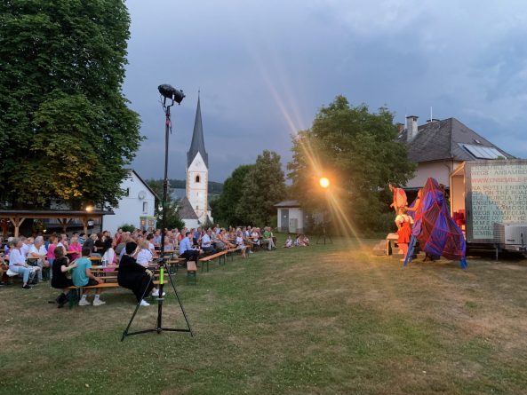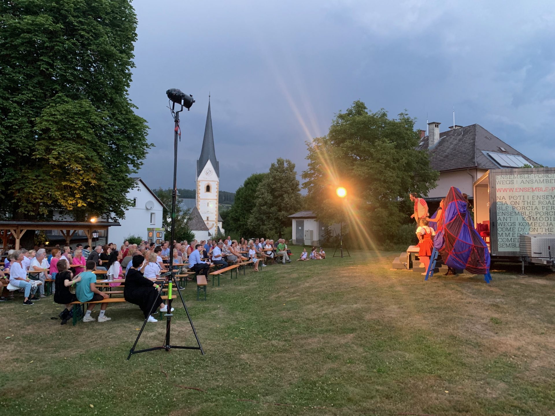 Wunderbares Sommerwetter, eine traumhafte Stimmung und eine tolle Kulisse umrahmten den Besuch des Theaterwagens der Komödienspiele Porcia am 21. Juli  in Moosburg. Schauplatz dieser Premiere in unserer Gemeinde war die Open-Air-Wiese zwischen der Tigringer Volksschule und dem Tigringerhof.