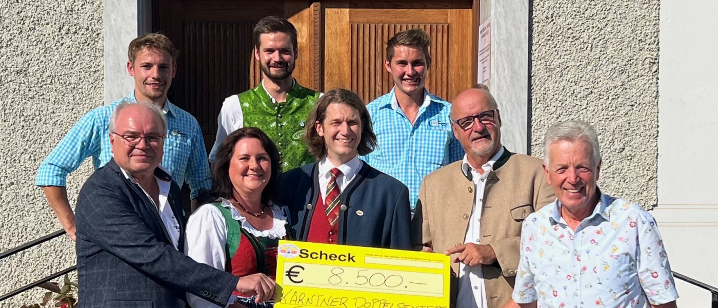 Das Benefizkonzert wurde gemeinsam mit dem Doppelsextett Kärnten, der Landjugend Arrich und unter Mithilfe der Marktgemeinde Moosburg organisiert. 8.500 Euro wurden eingenommen und kürzlich übergeben. Foto vl.: 1. Vzbgm. Gerhard Findenig (Arriach), Obfrau Margit Petutschnig, Obmann Bernd Lesacher, Bgm. Klaus Glanznig (Treffen), Bgm. Herbert Gaggl (Moosburg) und Mitglieder der Landjugend Arriach.