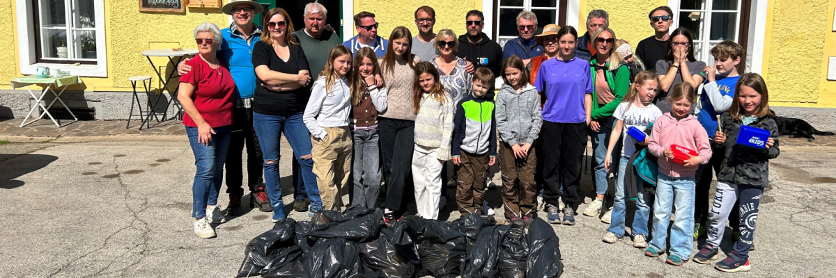 Verschieden Gruppen machten sich auf dem Weg, um achtlos weggeworfenen Müll einzusammeln. Diesmal waren viele Kinder mit dabei. Als kleine Belohnung für die MüllsammlerInnen gab es auf Einladung vom Bürgermeister Herbert Gaggl Würstel und Getränke.