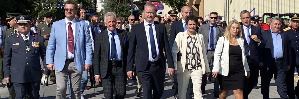 „Die Freiheit ist ein hohes Gut. Wir müssen darauf achten, dass wir souverän und unabhängig bleiben. Die derzeitige globale Situation gibt Anlass zu großer Sorge“, sagte Katerinis Bürgermeister Kostas Koukodimos.