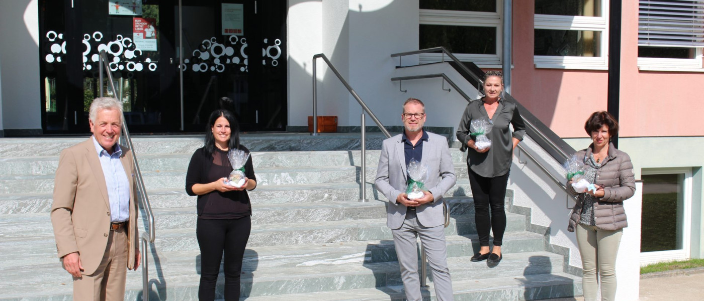 Das neue Schuljahr hat begonnen. Bürgermeister Herbert Gaggl begrüßte die LeiterInnen der Bildungseinrichtungen und stellte sich mit einem kleinen Präsent ein.