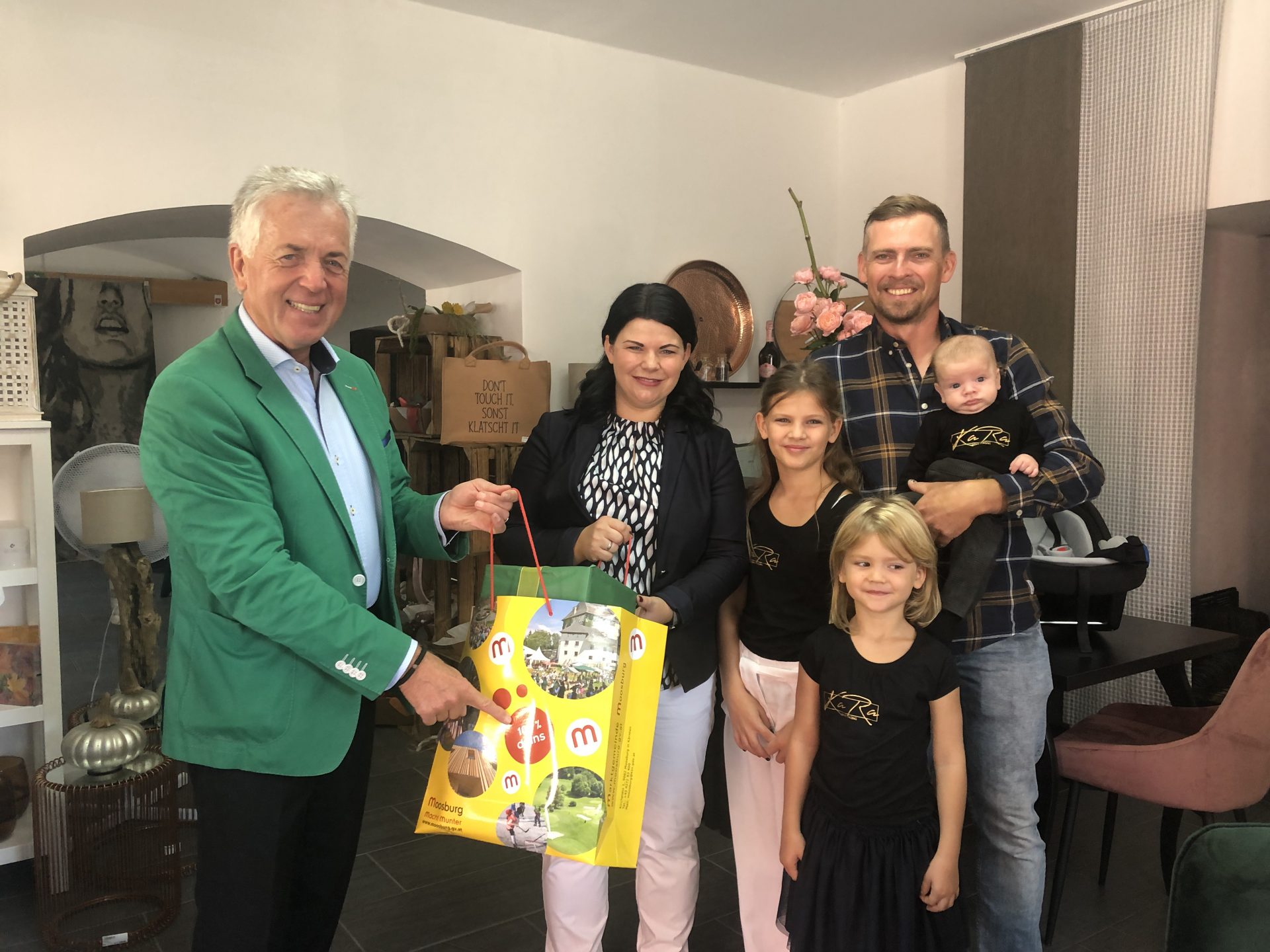 Foto: Bgm Herbert Gaggl gratulierte Katharina Rabitsch und ihrer Familie zur Geschäftseröffnung