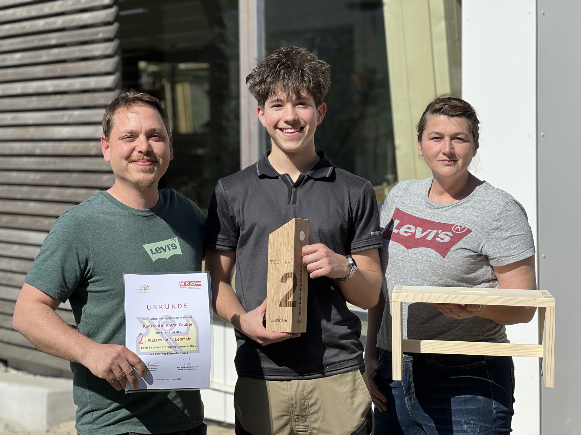 „Der Erfolg zeigt einmal mehr, wie wertvoll und lebendig das Handwerk in unserer Region ist. Es sind junge Menschen wie Konstantin, die beweisen, dass Leidenschaft, Fleiß und Können auch heute noch zentrale Werte in der Ausbildung sind – und dass Moosburg ein Ort ist, an dem Talente gefördert und geschätzt werden“, gratulierte Bürgermeister Herbert Gaggl. Auch der Betrieb selbst zeigt sich begeistert über den Erfolg: „Wir freuen uns, dass Konstantin bei uns in die Lehre geht und sich motiviert hat, beim Wettbewerb teilzunehmen. Das ist nicht selbstverständlich, weil die Vorbereitung und das Üben hat er in seiner Freizeit gemacht“, betonen die Tischlermeister Alexander und Christina Masser, Inhaber der Tischlerei Fischer in Moosburg.
