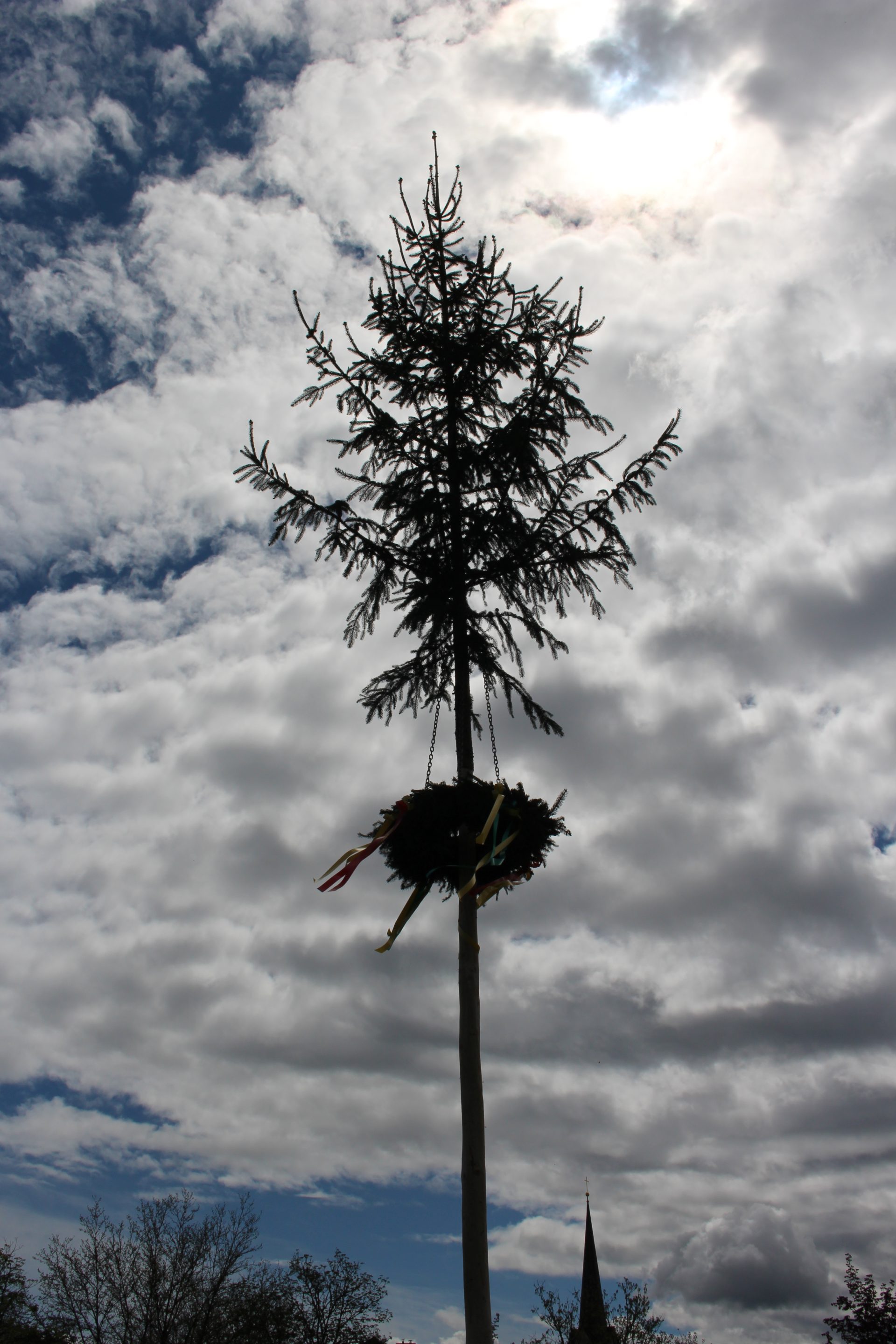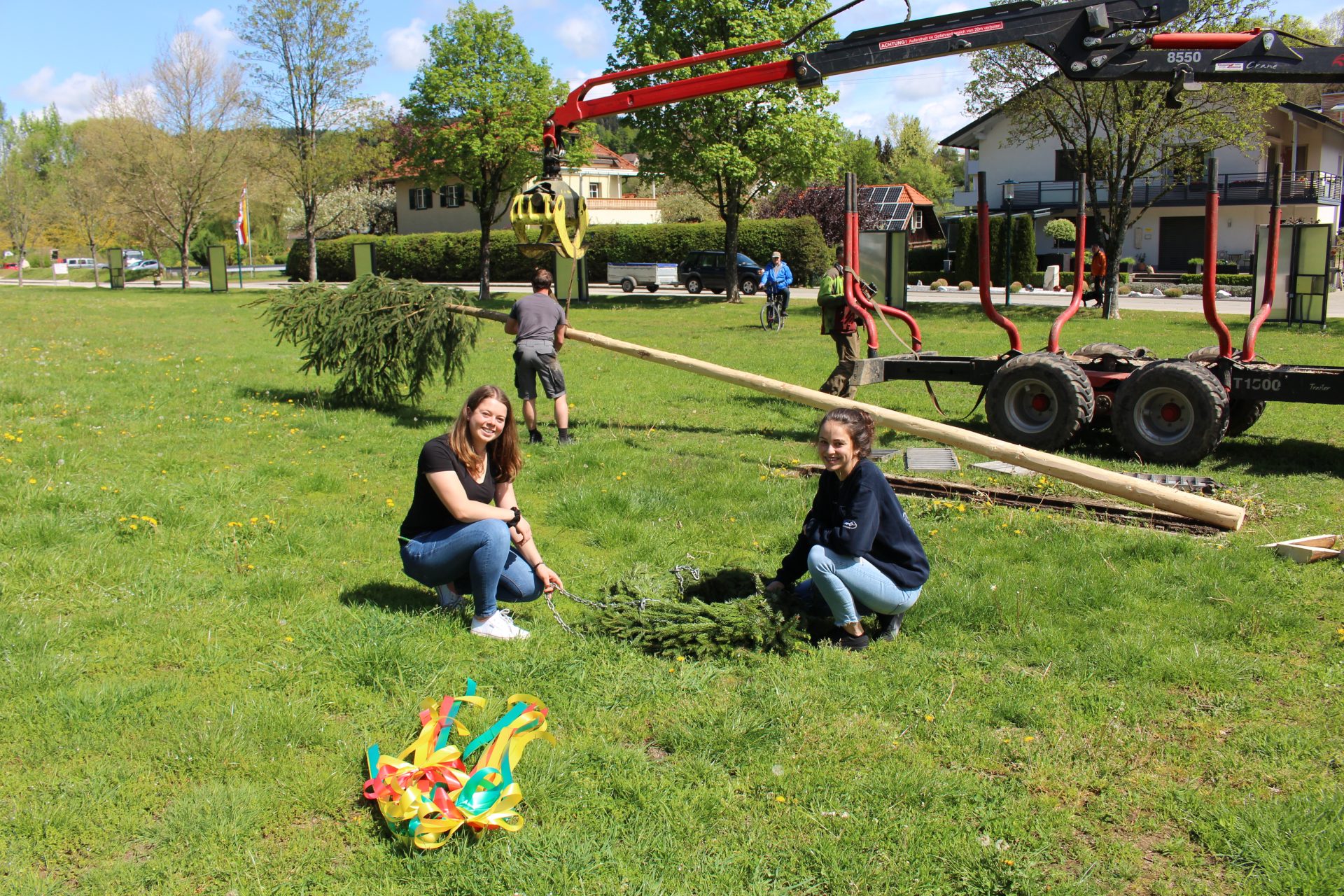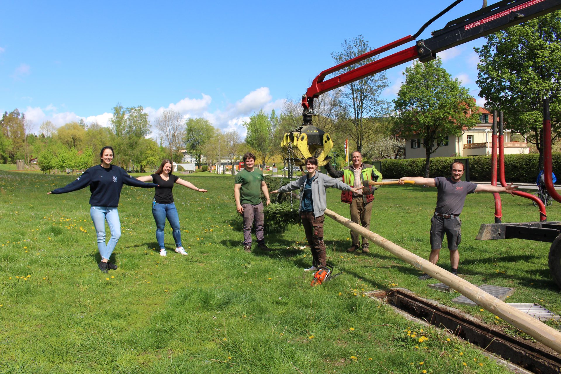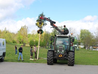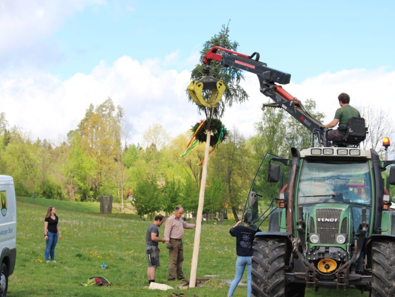 Die Landjugend Moosburg lässt sich nicht beirren: Ein Maibaum wurde als Signal der Hoffnung und der Zuversicht auf der Schlosswiese aufgestellt.