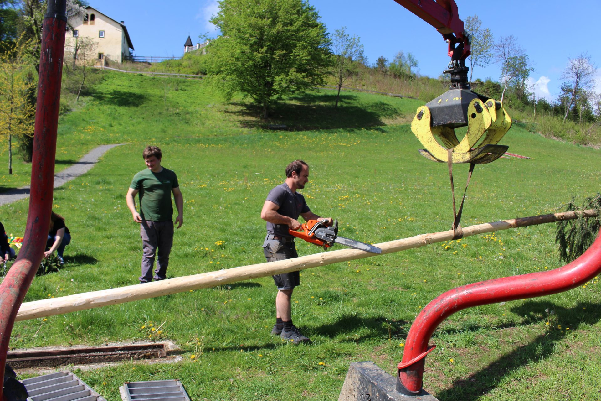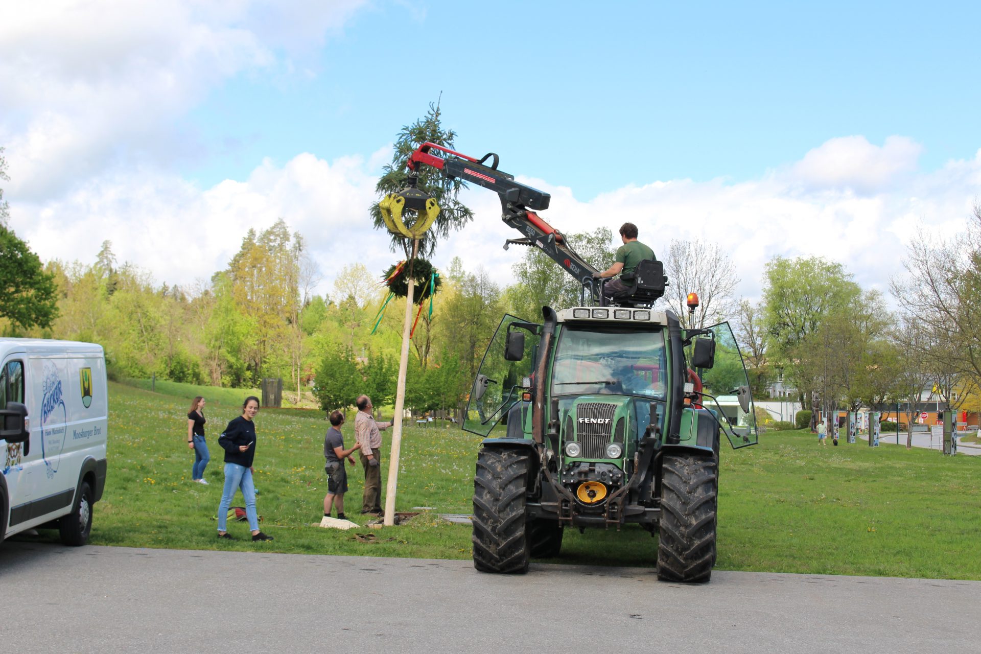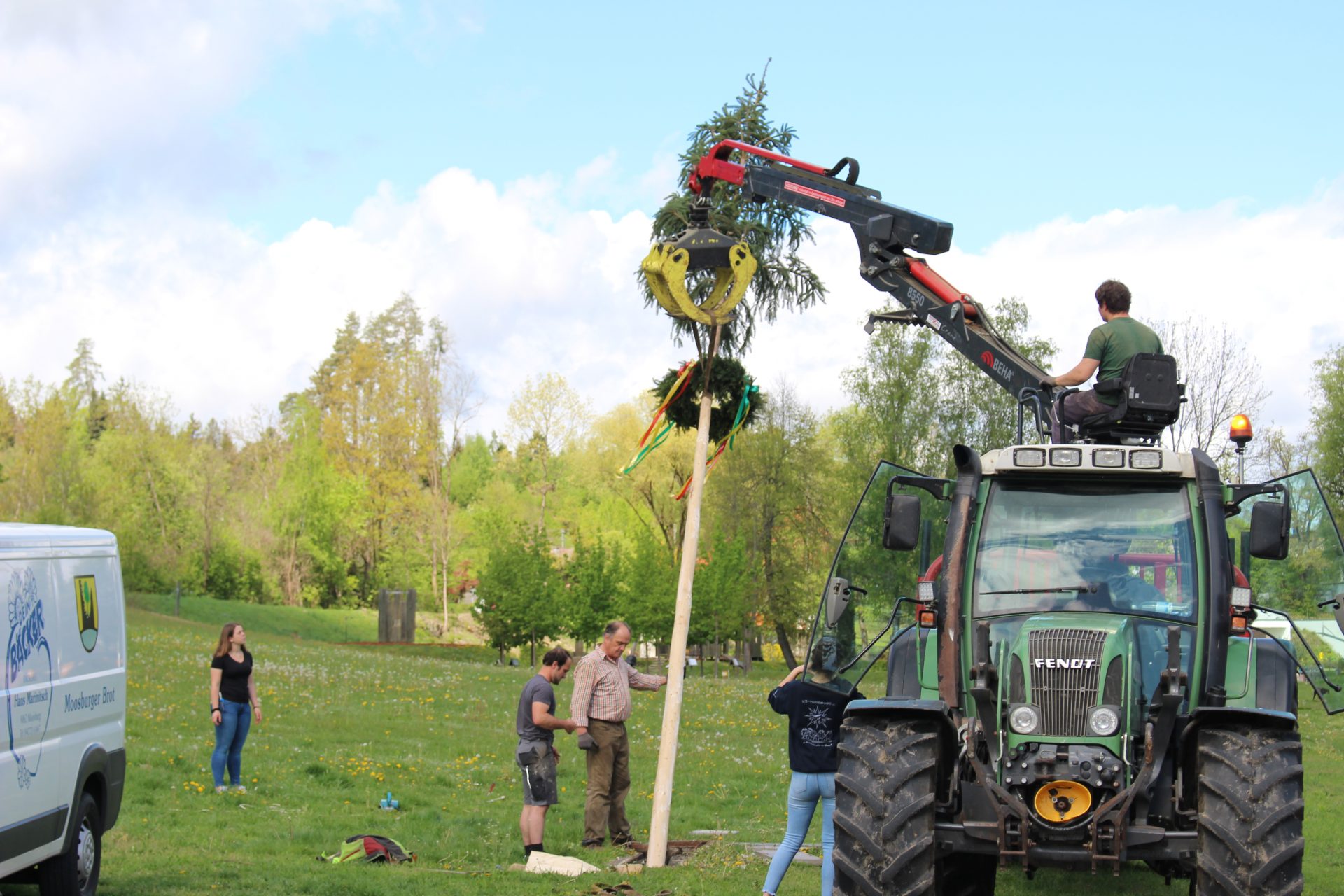 Die Landjugend Moosburg lässt sich nicht beirren: Ein Maibaum wurde als Signal der Hoffnung und der Zuversicht auf der Schlosswiese aufgestellt.
