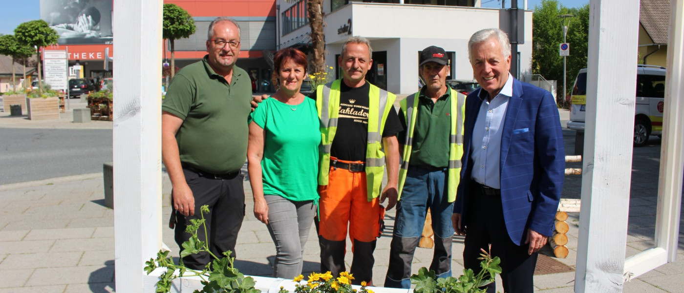 Moosburg blüht wieder auf. Die Mitarbeiter:innen haben das Zentrum wieder mit Blumen geschmückt.