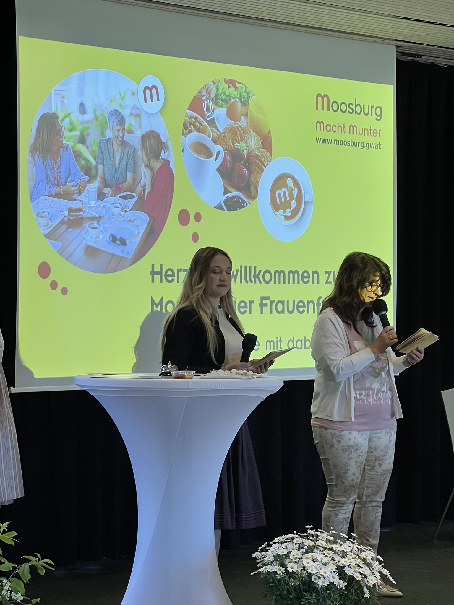 Nach der Begrüßung durch Frau Vizebürgermeisterin Astrid Brunner, Herrn Bürgermeister LAbg Herbert Gaggl sowie Frau Mag.a Evelyn Pototschnig vom Land Kärnten, stellten sich zu Beginn zwei Unternehmerinnen aus Moosburg, Frau Barbara Kopeinig und Frau Silvia Mitterer mit ihrem vielfältigen und ansprechenden Angebot vor und luden die Teilnehmerinnen ein, sie im Anschluss auch an ihrem Stand zu besuchen.