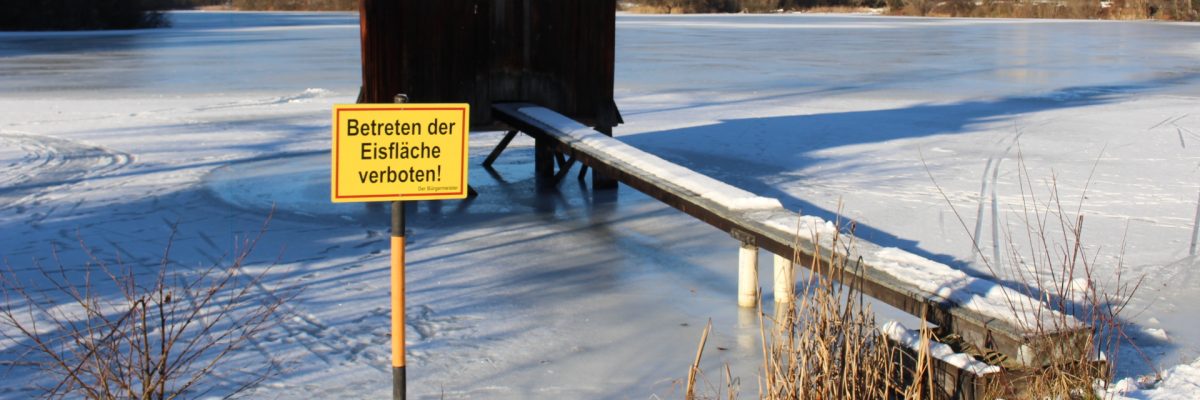 Das Betreten der Eisfläche auf den Moosburger Teichen ist verboten. Es herrscht Lebensgefahr.