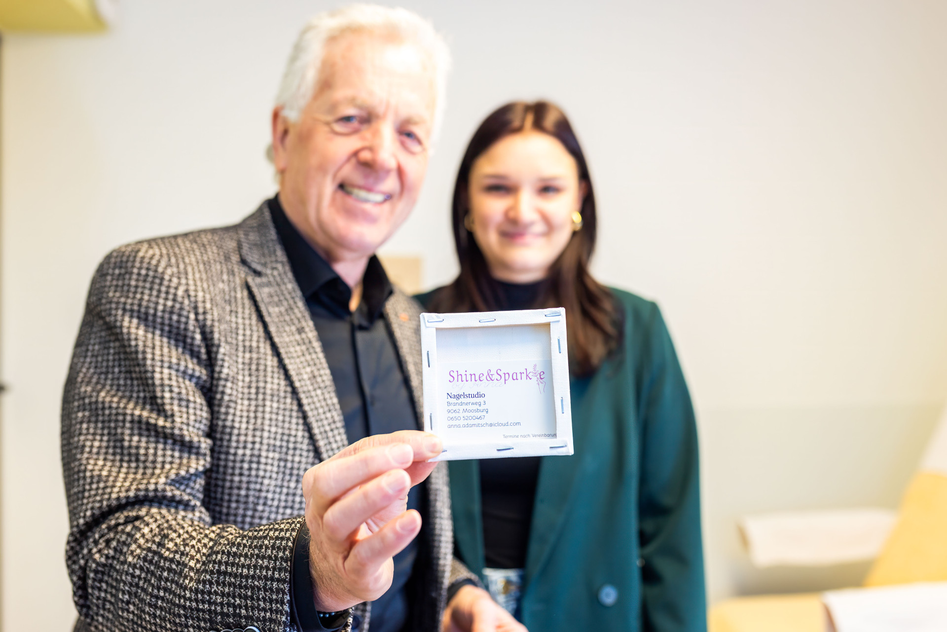 Mit erst 19 Jahre wagte Anna Adamitsch mit „Shine und Sparkle by Anna“ im Mai 2025 den mutigen Schritt in die Selbständigkeit. In ihrem Nagelstudio vereint sie Kreativität und Präzision, dabei steht Kundenzufriedenheit bei ihr an erster Stelle. Besonders gern erfüllt sie individuelle Wünsche, so auch mit speziellen und ausgefallenen Designs. Davon konnte sich LAbg Bürgermeister Herbert Gaggl persönlich überzeugen, nachdem ihm als Geschenk speziell designte Nägel mit Bezug zu unserer Gemeinde von der Jungunternehmerin überreicht wurden. „Ich bin beeindruckt von Annas Kreativität und Engagement. Sie bereichert unsere Gemeinde mit frischem Unternehmergeist. Ich wünsche ihr von Herzen, dass all ihre kreativen Wege erfolgreich sind.“ Aktuell absolviert Anna eine Ausbildung zur Visagistin und plant bald auch Wimpernverlängerungen anzubieten.