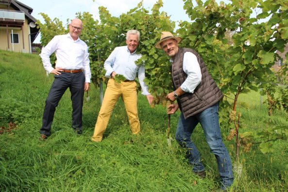 „Ich gratuliere Gerfried und Robert zu ihrer Initiative und ihren Einsatz. Ich wünsche den Jungwinzern eine gute Ernte und viel Erfolg“, sagte Bürgermeister Herbert Gaggl anlässlich eines Besuches im Weinberg.