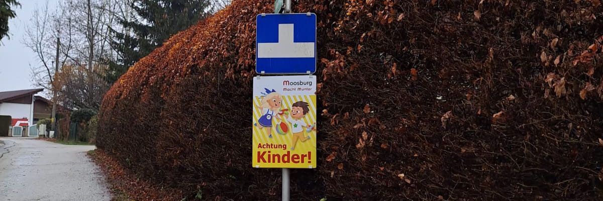 Am Anfang des Leitnerweges wurde eine „Achtung Kinder-Tafel“ aufgestellt.