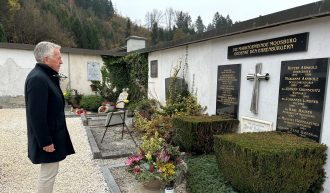 Anlässlich des Allerheiligen-Tages gedachte Bürgermeister Herbert Gaggl am Ehrengrab der Marktgemeinde den verstorbenen Moosburgerinnen und Moosburgern.