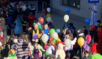 Schüler*innen, Lehrer*innen und Eltern zogen durch Moosburg und feierten den Faschingdienstag. Bürgermeister Herbert Gaggl ließ es sich nicht nehmen und verteilte Süßigkeiten an die Kids. „Es ist immer schön, wenn sich die Kinder freuen und ihren Spaß haben“, sagte der Bürgermeister.