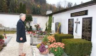 Anlässlich des Allerheiligen-Tages gedachte Bürgermeister Herbert Gaggl am Ehrengrab der Marktgemeinde den verstorbenen Moosburgerinnen und Moosburgern.