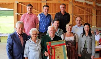 Bei guter Gesundheit feierte Josef „Pepe“ Jaritz, vlg. Kreuzjackl seinen 102. Geburtstag. Bürgermeister Herbert Gaggl und Gemeinderat Heinz Brunner gratulierten herzliche. „Unser Pepe ist ein Moosburger Original. Er ist jeden Tag in der Gaststube und genießt auch noch ein Bier. Ich wünsche ihm zum Geburtstag alles Gute und viel Gesundheit“, sagte der Bürgermeister.