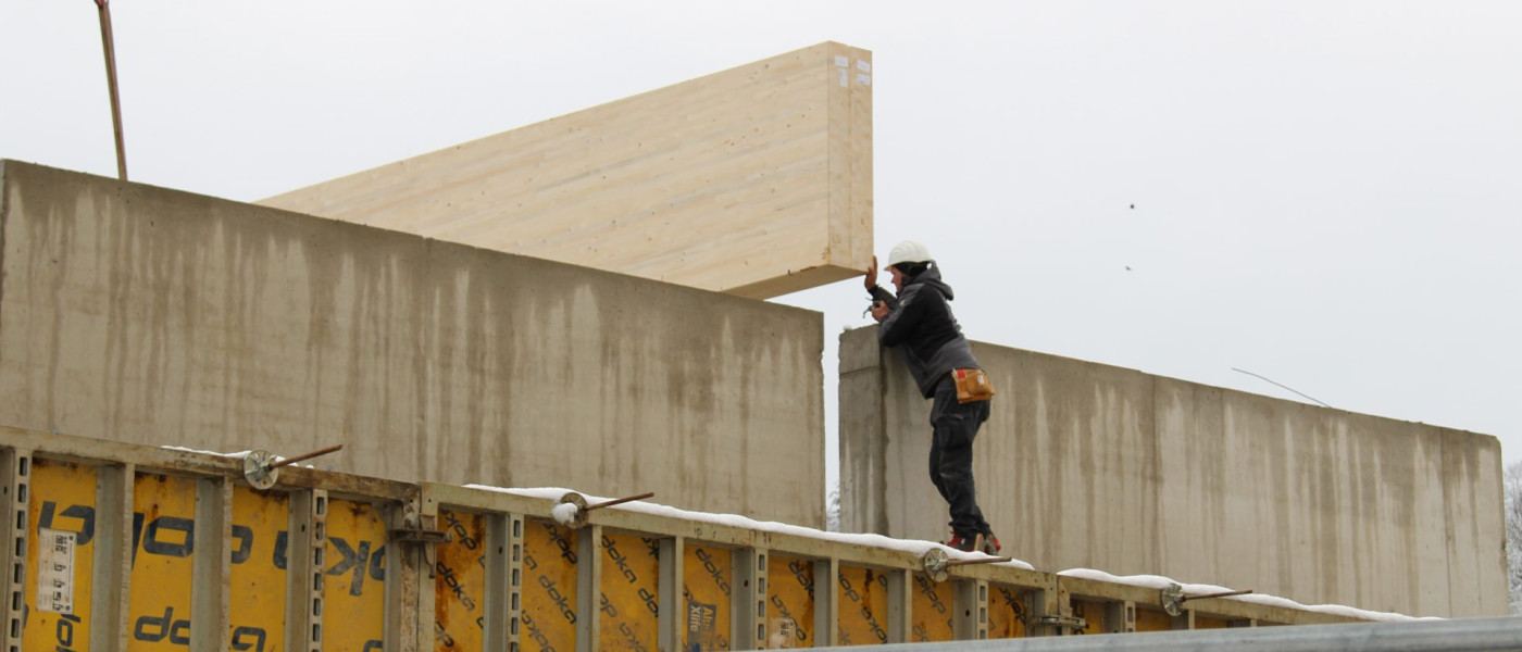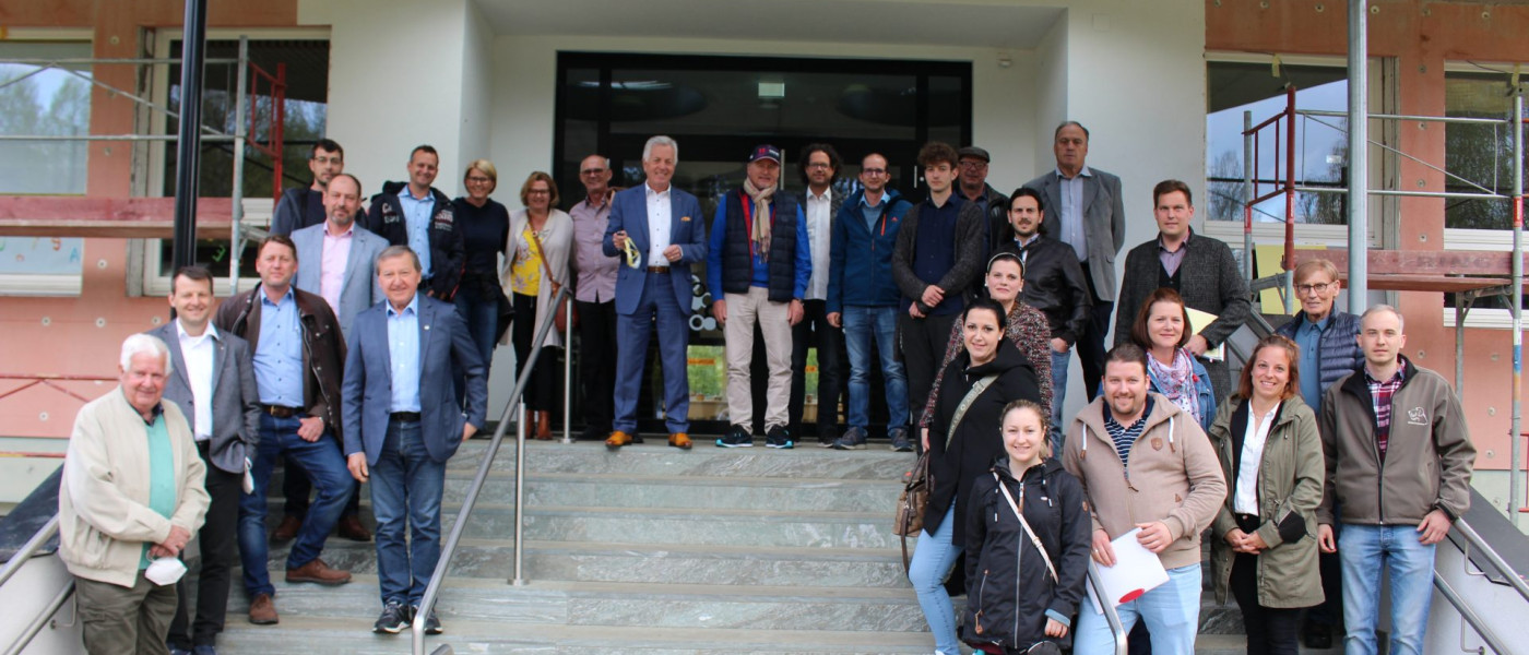 Die Bauarbeiten an der neuen Ballsporthalle mit Mensa gehen zügig voran. Am Dienstag nach Ostern wurden die Leimbinder geliefert und eingebaut. „Das war eine großartige Leistung. Ich bedanke mich bei allen Arbeitern auf der Baustelle für ihren Einsatz“, sagte Bürgermeister Herbert Gaggl.