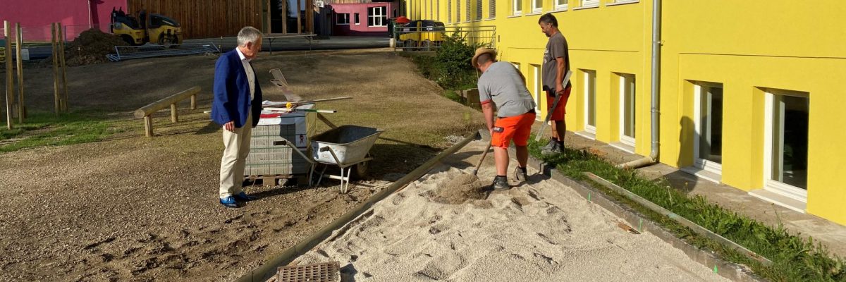 „Wir haben die Volksschule saniert, die Sporthalle und Mensa gebaut. Der letzte Bauabschnitt im Bildungscampus ist die Gestaltung der Außenanlage. Wir legen darauf großen Wert, dass die Zufahrt zum Campus sicher ist und die Kinder geschützt sind“, sagt Bürgermeister Herbert Gaggl. „Diese Woche werden die Arbeiten fertiggestellt, so dass zu Schulbeginn alles in Ordnung ist“, so der Bürgermeister.