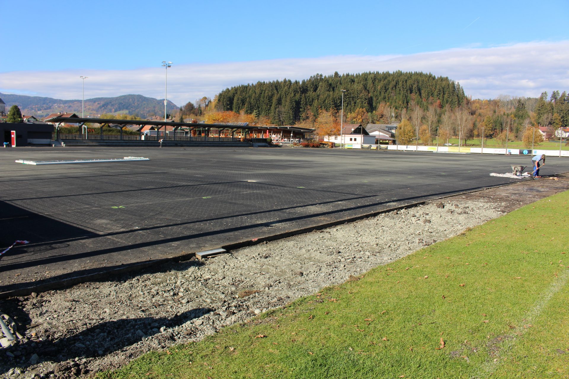 Die Elastikschicht wird freigelegt und saniert und darauf ein neuer Rasen verlegt. Die Fertigstellung ist Anfang Dezember geplant. Sollte aufgrund von Kälte eine Verlegung und Verklebung nicht möglich sein, werden die Arbeiten im Frühjahr 2021 abgeschlossen.