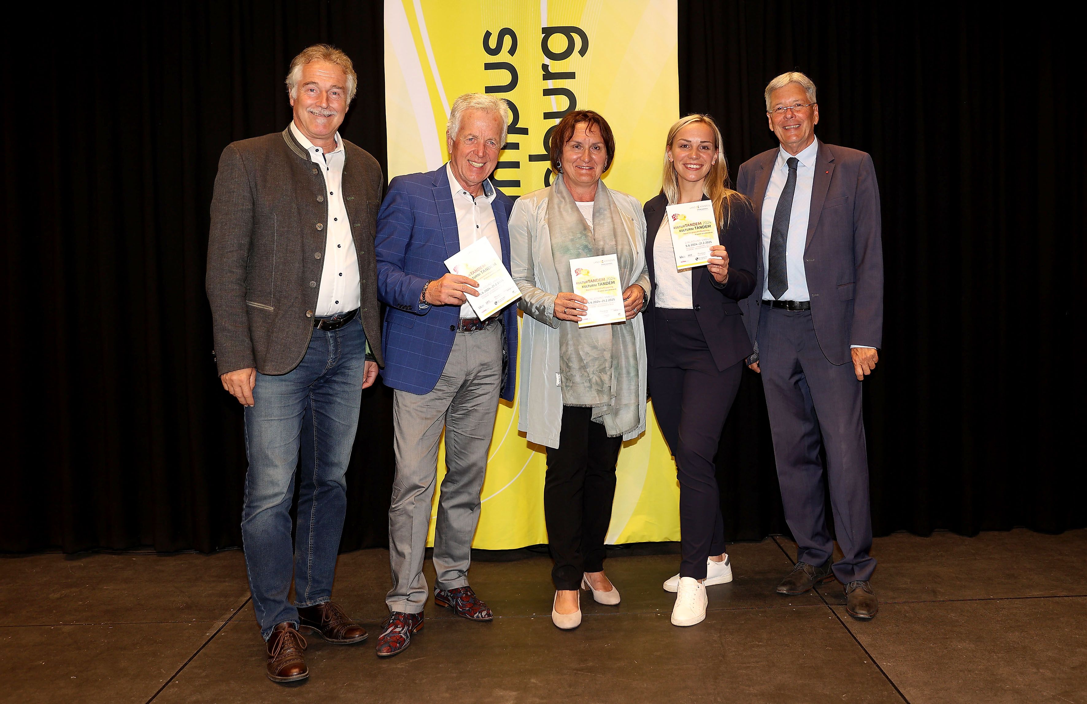 Foto oben: Eröffnung KulturTandem:  Franz-Josef Smrtnik, Bürgermeister Herbert Gaggl, Bürgermeisterin Elisabeth Lobnik, Manuela Lobnik, Landeshauptmann Peter Kaiser.
